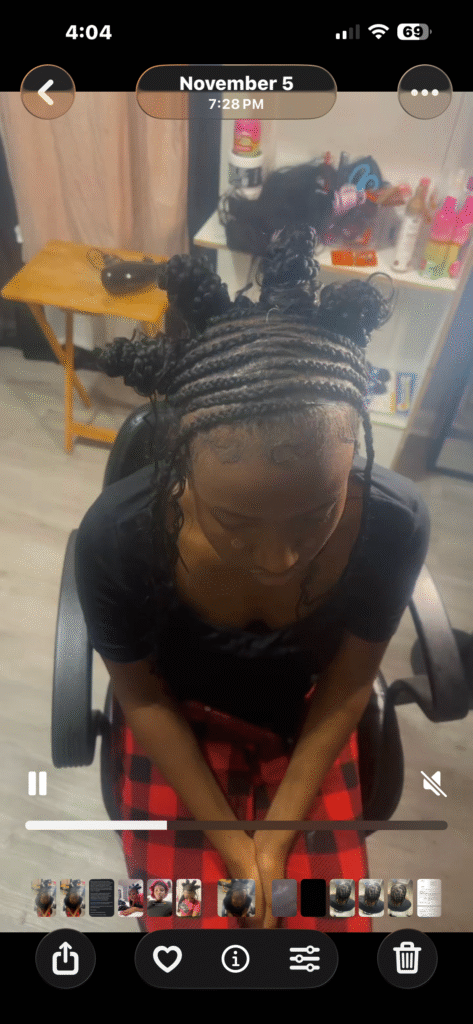 I’m a Baltimore-based braider who’s all about clean work, good energy, and styles that last. I started braiding when I was young, and what was just a hobby turned into a full-blown passion. Now I help clients feel confident, put together, and cared for — from their first knotless braid to their next protective style.